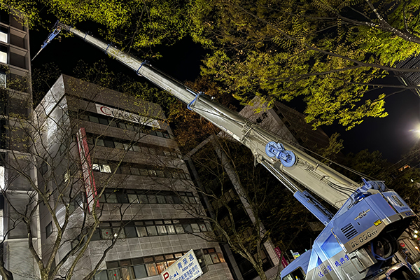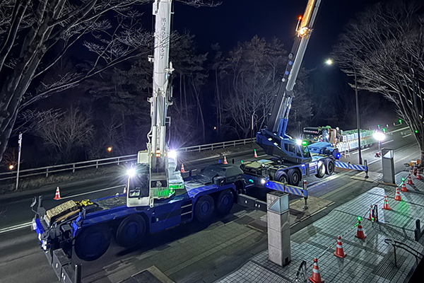 現場ごとに異なる条件へ的確に対応するため、事前調査・計画立案、各種申請の代行、搬入ルートの構築、重機・警備等の手配、搬入据付の実作業まで一連の工程をワンストップで対応します。